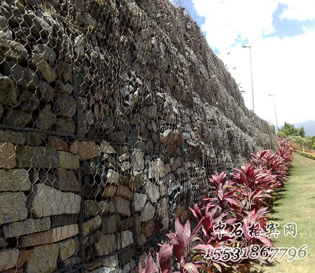 4、锌-5%铝-混合稀土合金钢丝包塑:在锌-5%铝-混合稀土合金钢丝的表面包一层PVC保护层,再编织成各种规格的六角网。这层PVC保护层将会大大增加在高污染环境中的保护,并且通过不同颜色的选择,使其能和周围环境融合。