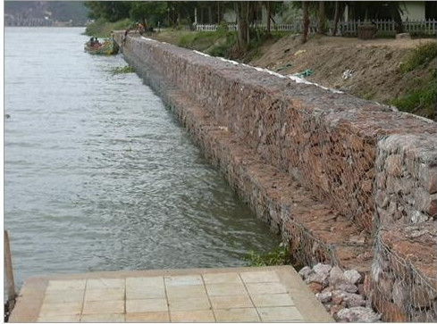 之前河岸加固工程大多采用块石或预制混凝土块结构型式,虽然重点解决了河道因河水冲刷形成对堤坡边缘威胁的问题,而忽视了河道生态功能。生态格宾网护坡是一种既能减弱河水冲刷力,确保堤坡稳定,又能维护和恢复河道生态的结构型式。